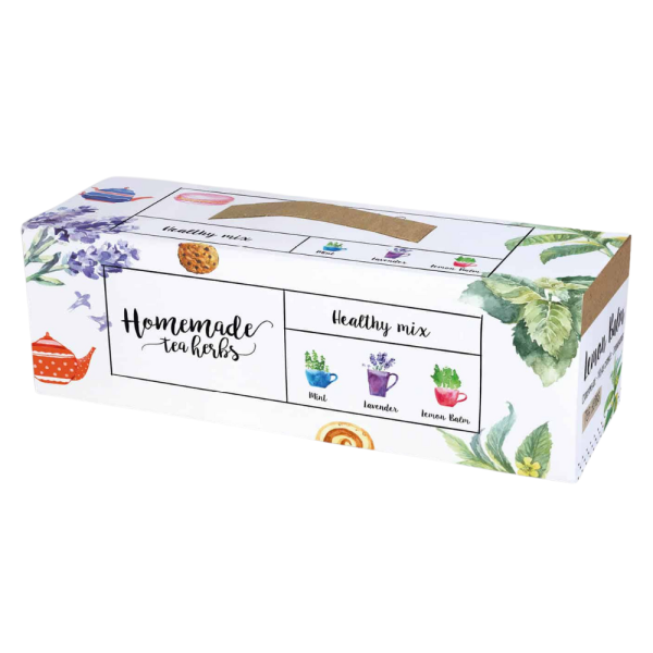 Tämä yrttien kasvatussetti sisältää kaiken tarvittavan aromaattisten yrttien helppoon kasvattamiseen kotona – ikkunalaudalla tai ulkona. Setissä on mukana multakiekko ja siemenpussit, joten yrtit voidaan kylvää suoraan laatikkoon. Lisää vain vettä ja käytä kantta kätevänä alustana, joka estää veden valumisen pinnoille.